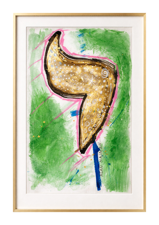 Rendered in Avraham Rafael’s signature tribalcosmic™ language, the form is alive with motion — layered gold textures, celestial markings, and spontaneous gesture. The surface shimmers with intensity, blending street energy with sacred symbolism.