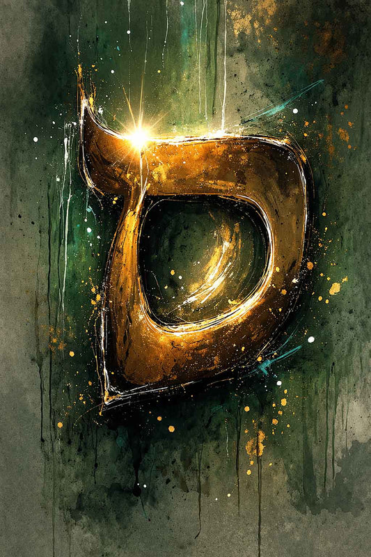 Yud of Light captures the raw, explosive energy of the Hebrew letter י (Yud) — the smallest letter in the aleph-bet, yet the origin of all creation. In this composition, the Yud is no longer contained — it stretches, expands, and pushes against the boundaries of the canvas, as if the divine spark itself cannot be held.